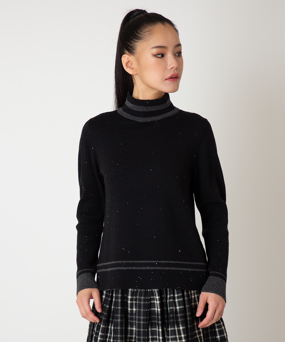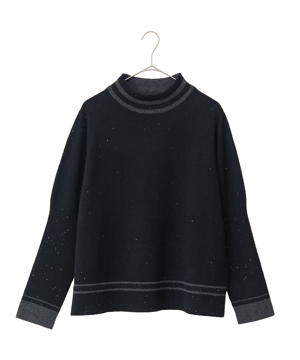 【大きいサイズ】ボーダーネックスパンコールニットプルオーバー