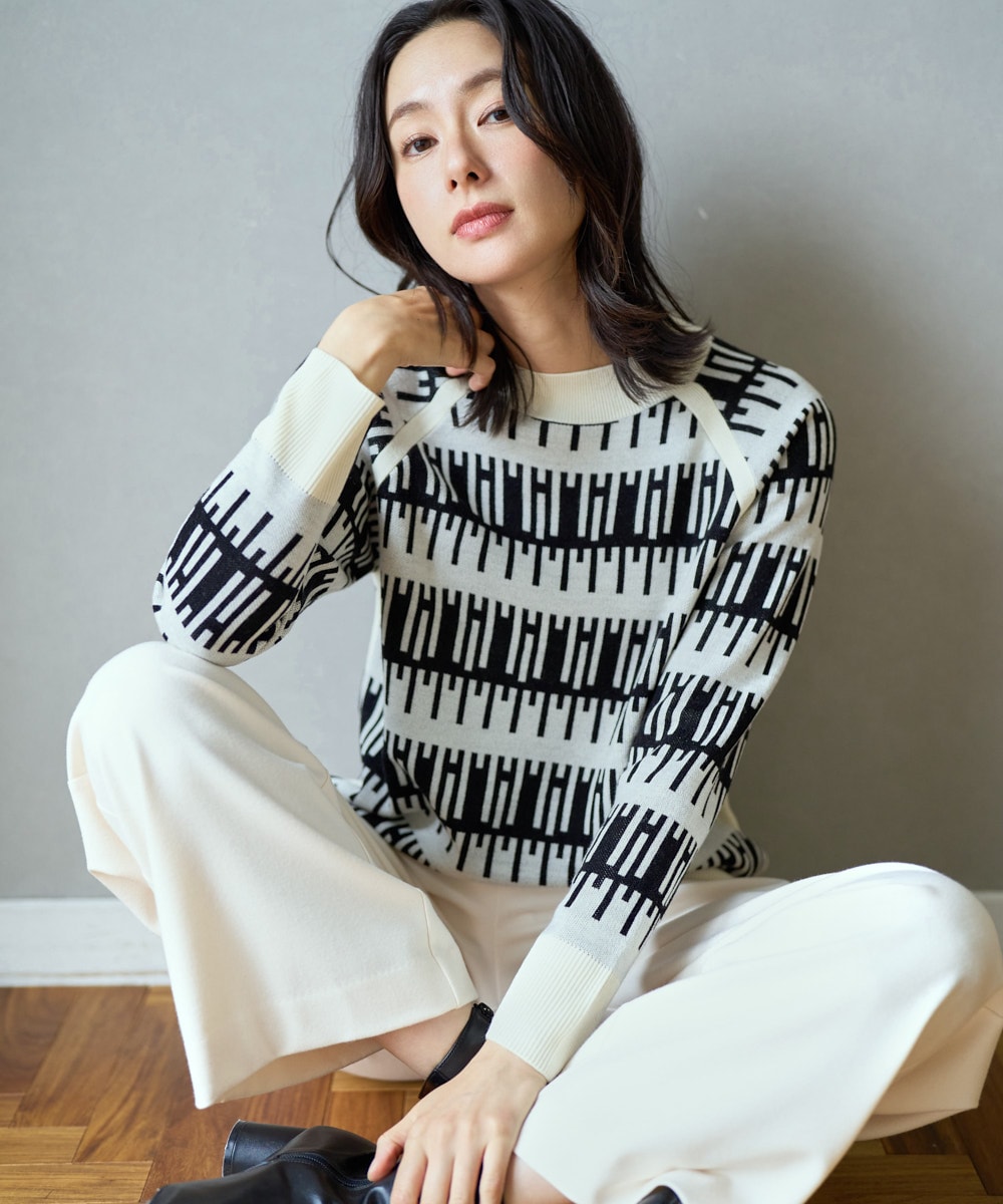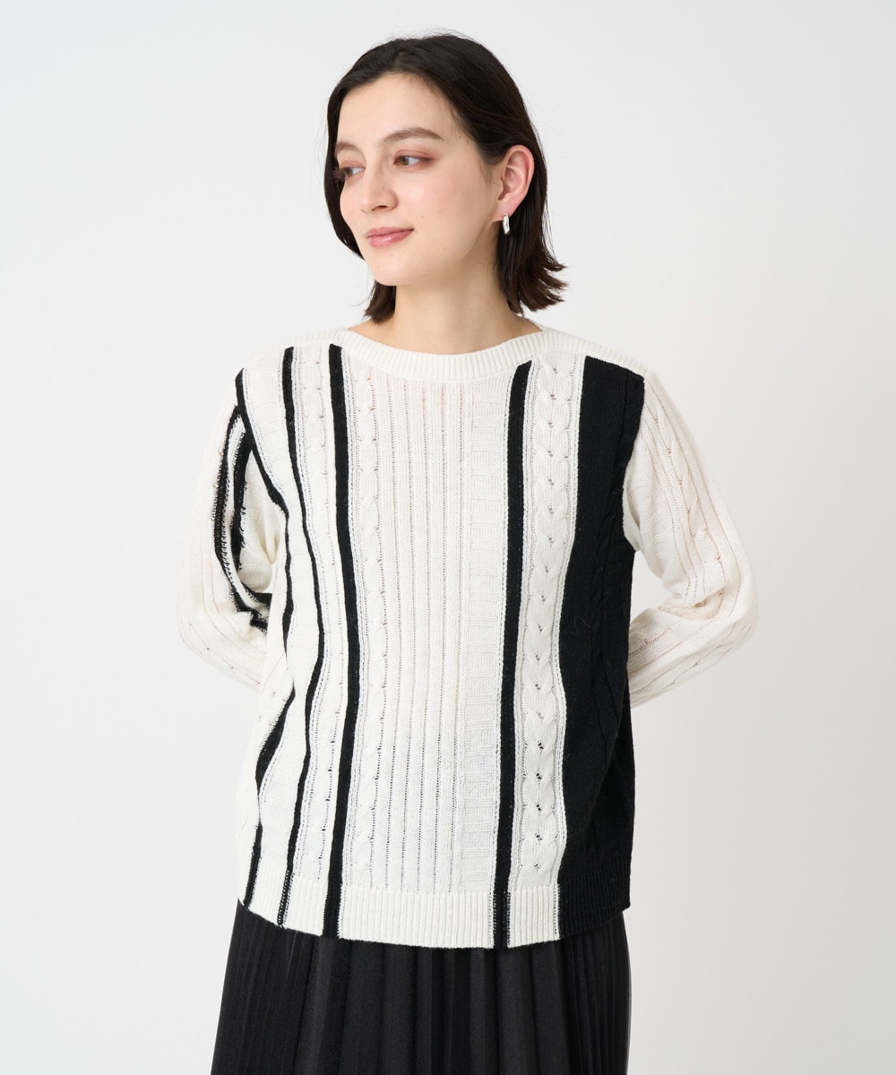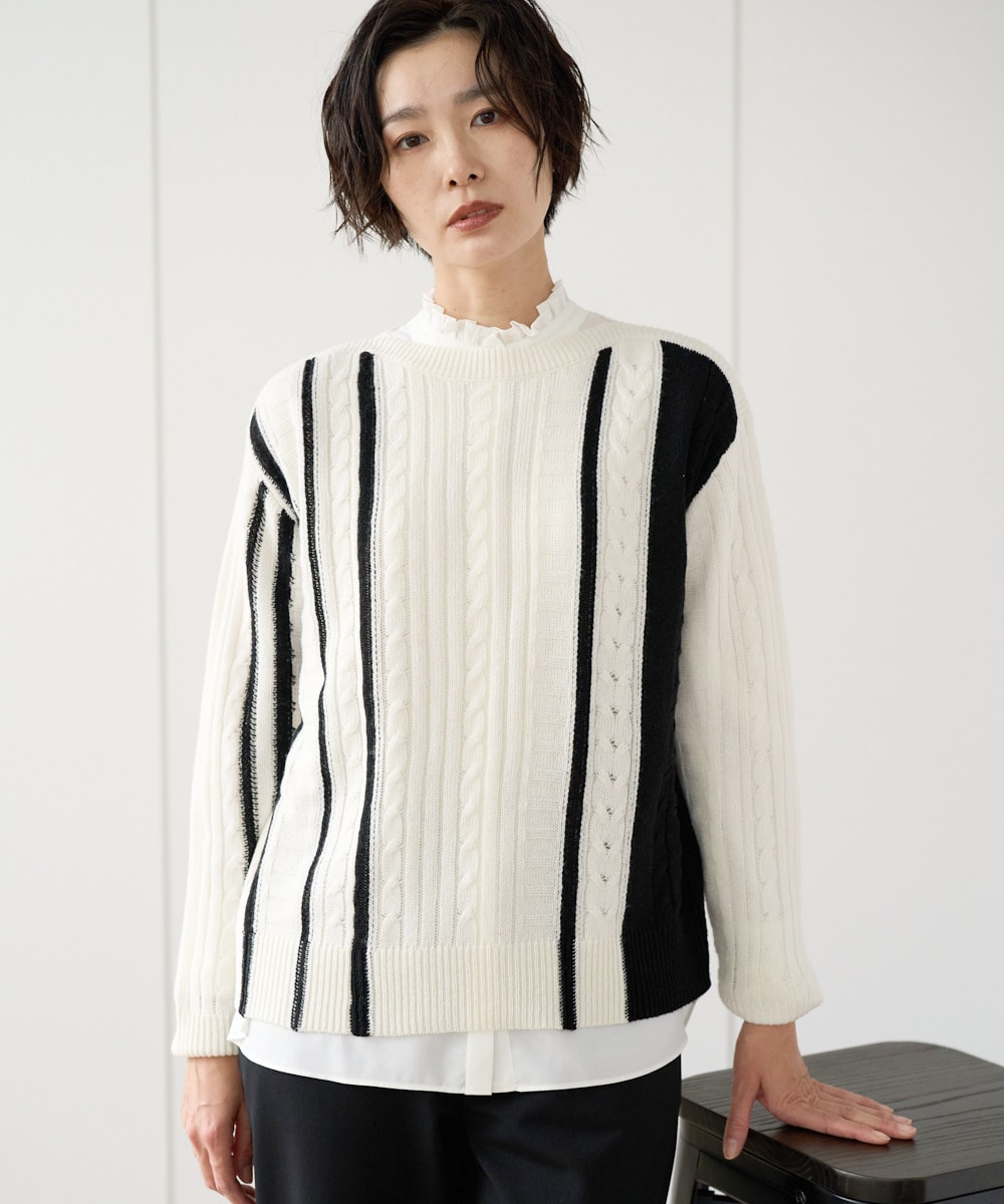 バイカラーストライプケーブルニットは、すっきりとしたニットです。