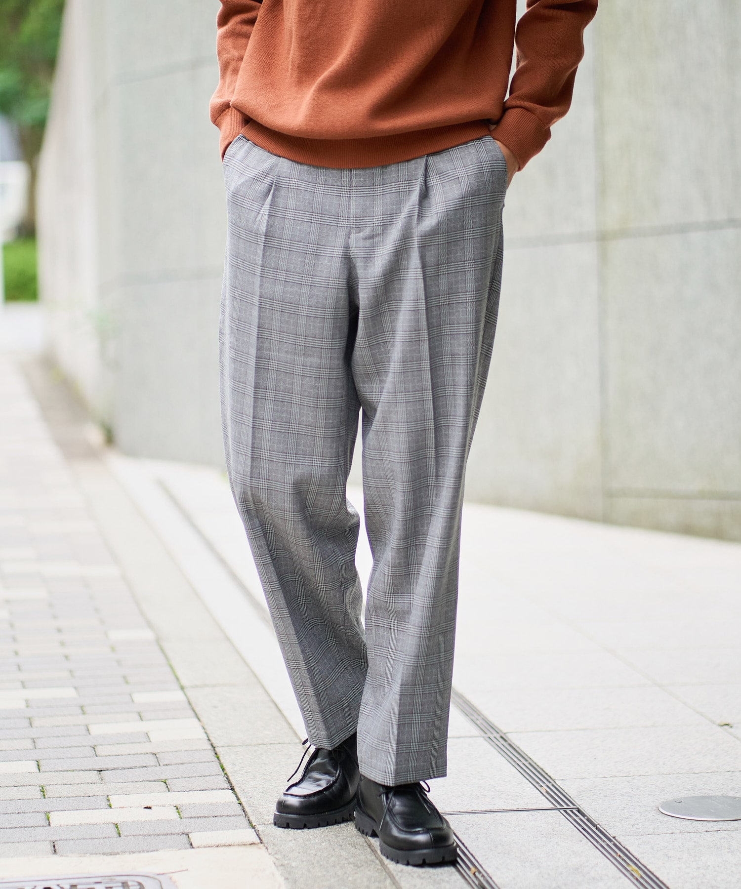 【イージーケア/毛玉になりにくい】LANATECチェックワンタックワイドイージースラックス【洗濯機で洗える/ストレッチ】