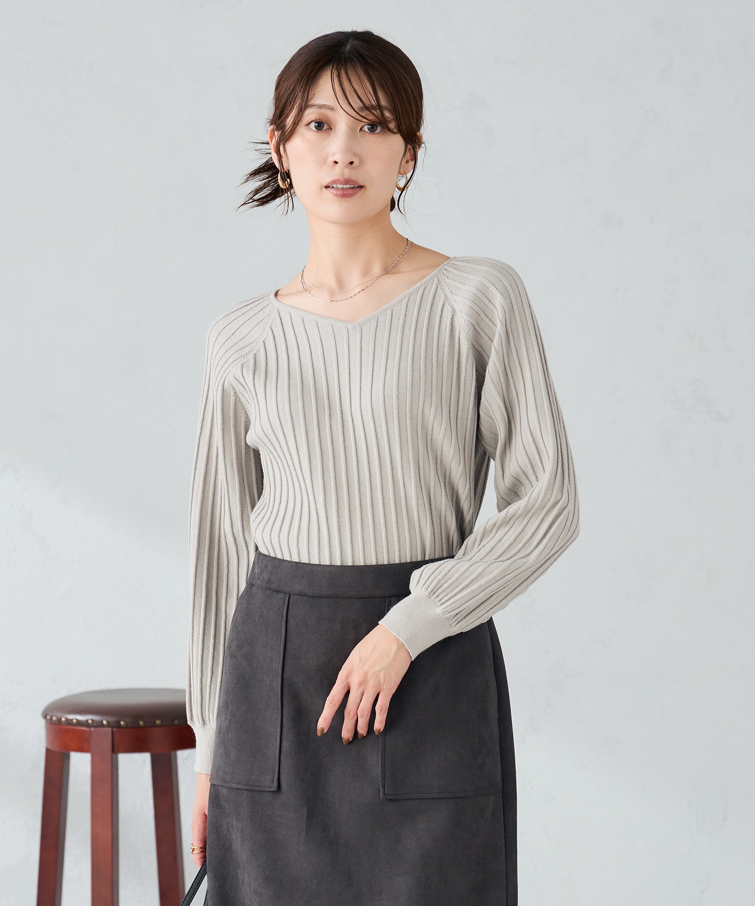 リブVネックカットソーは、首元のきれい見えと抜群の着回し力で、学校行事や女子会、デイリーコーデに重宝します。
