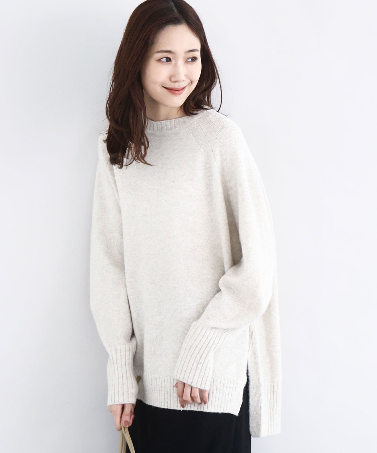 上品なオフホワイトのワントーンコーデにぴったりの、カラーツイードワイドパンツは、暖かみと華やかさを兼ね備えた一着。