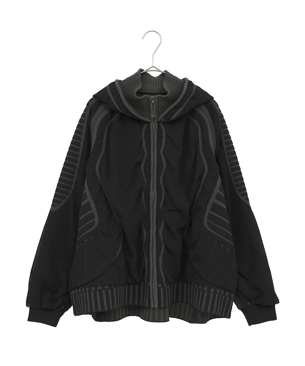 ストレッチ糸で表現されたカラーコントラストは、洒落感を演出し、肩周りを優しく包み込む設計。