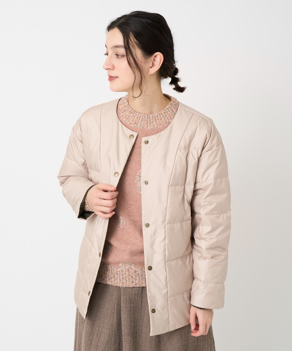 軽量かつ柔らかな素材感が魅力のソフトタフタリバーシブルダウンは、トレンドのショート丈デザインで多彩なコーディネートを楽しめます。