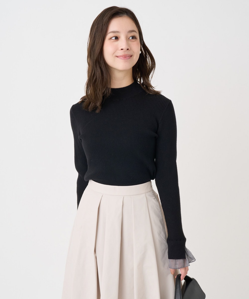 【千鳥格子柄シフォンレイヤード風ハイゲージニット】