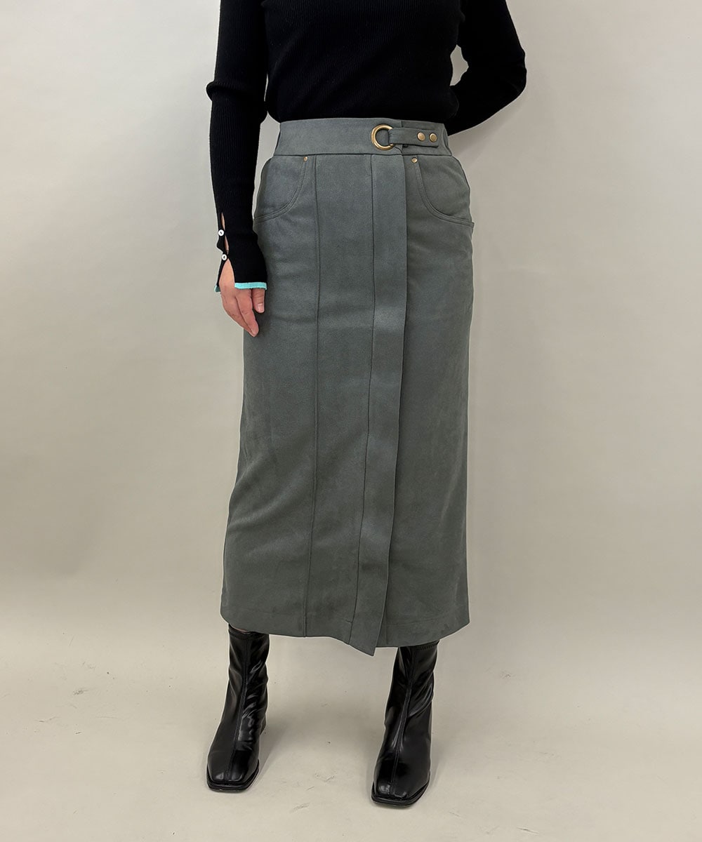 ボトムスにはスエードライクの生地感が上品なタイトスカート。