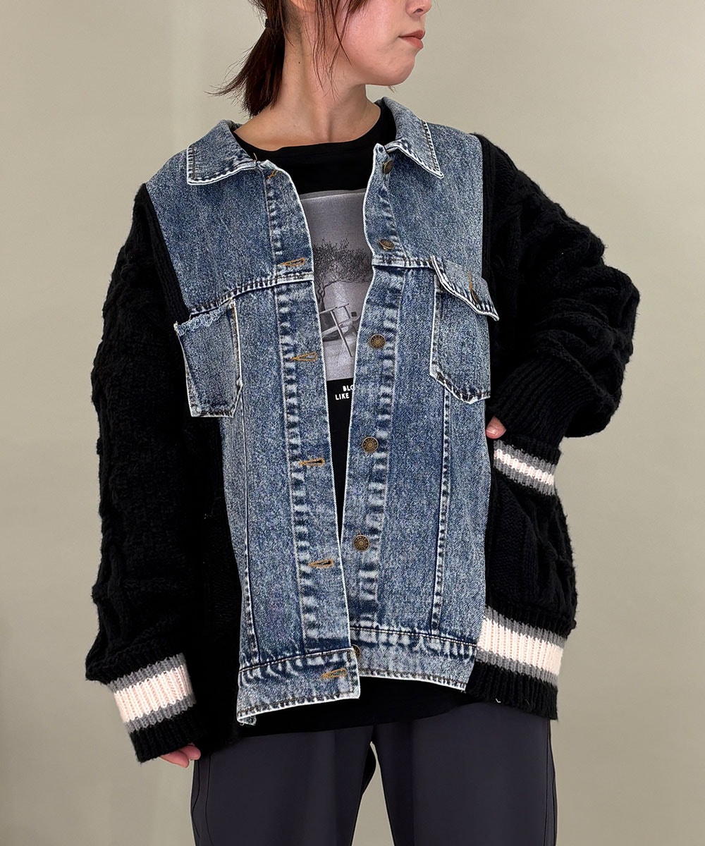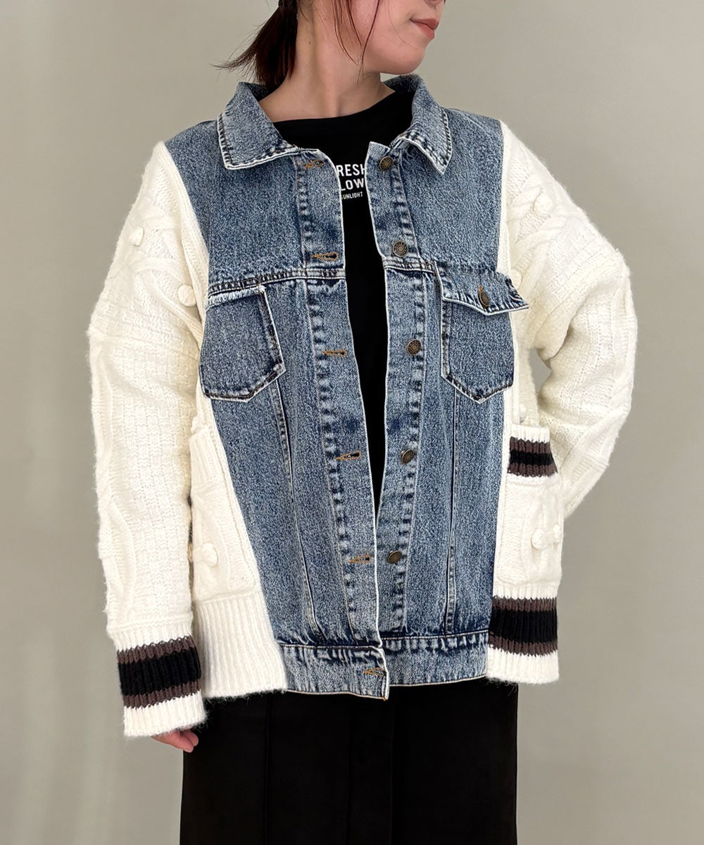 デニム×ニットの異素材のコントラストが効いたブルゾン。