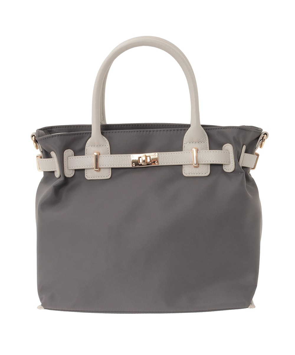 [2WAY/撥水加工]異素材ベルトデザインスクエアバッグ