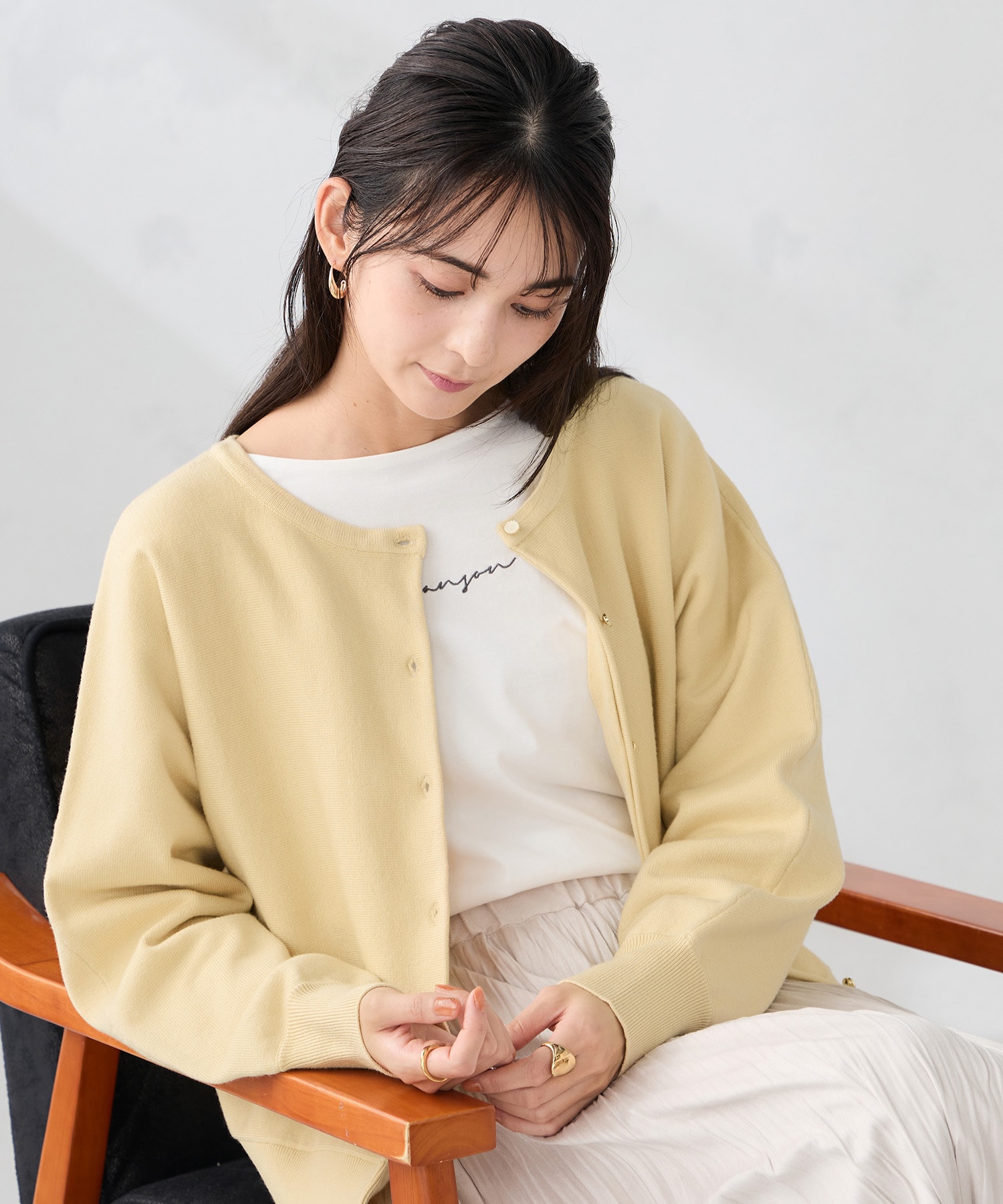 カーディガン、プルオーバーで着用できる汎用性の高い一枚