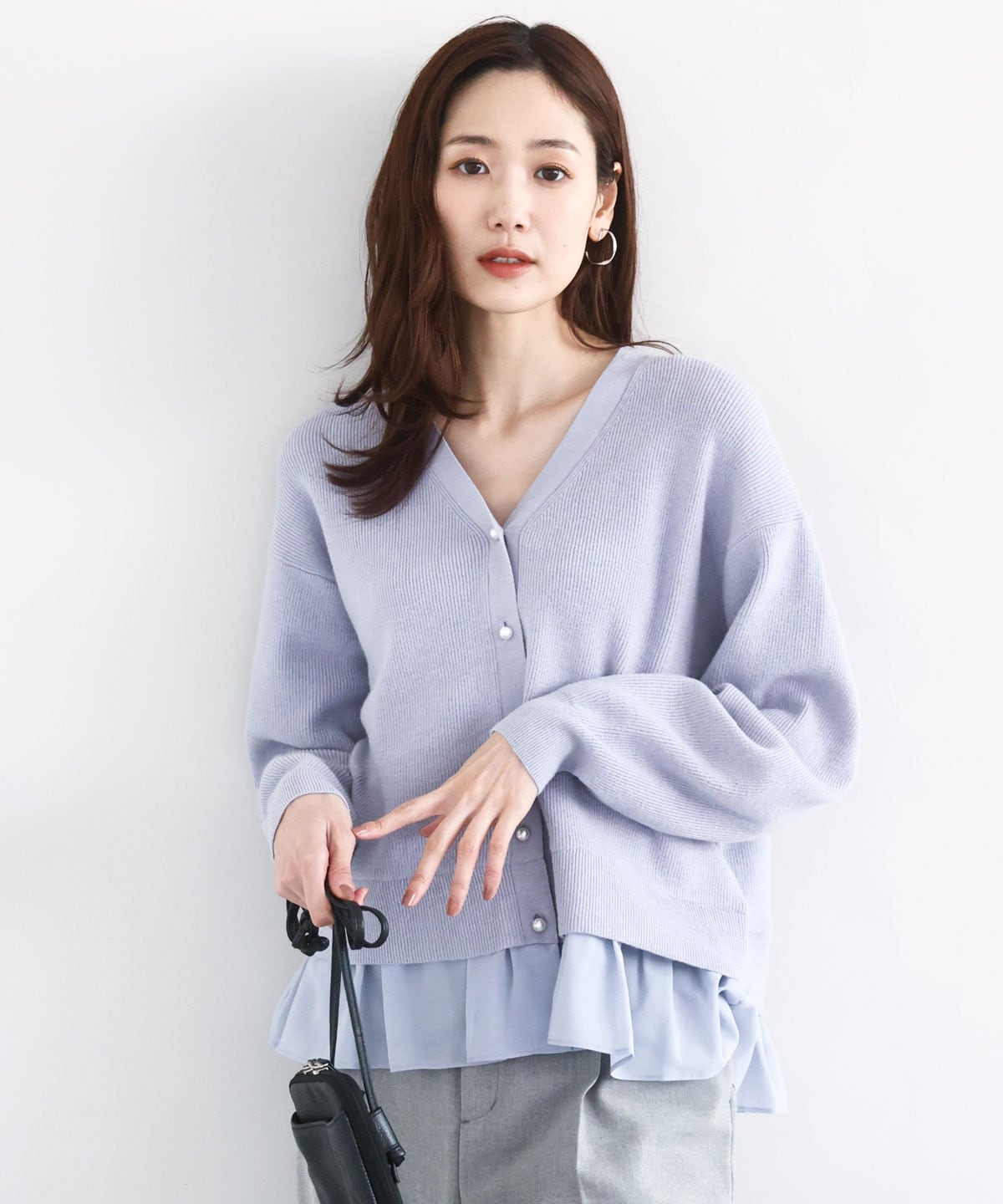 大人かわいいコーデにマッチしやすいVネックカーディガンです。