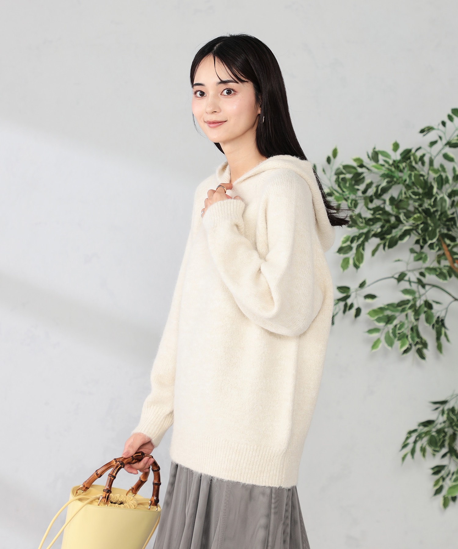 柔らかい起毛素材を使用したふわふわニットフーディー