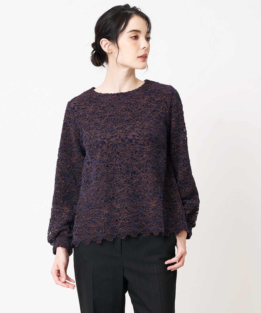 上質なレースブラウスは、バイカラーでモール糸を使ったエレガントなデザイン。