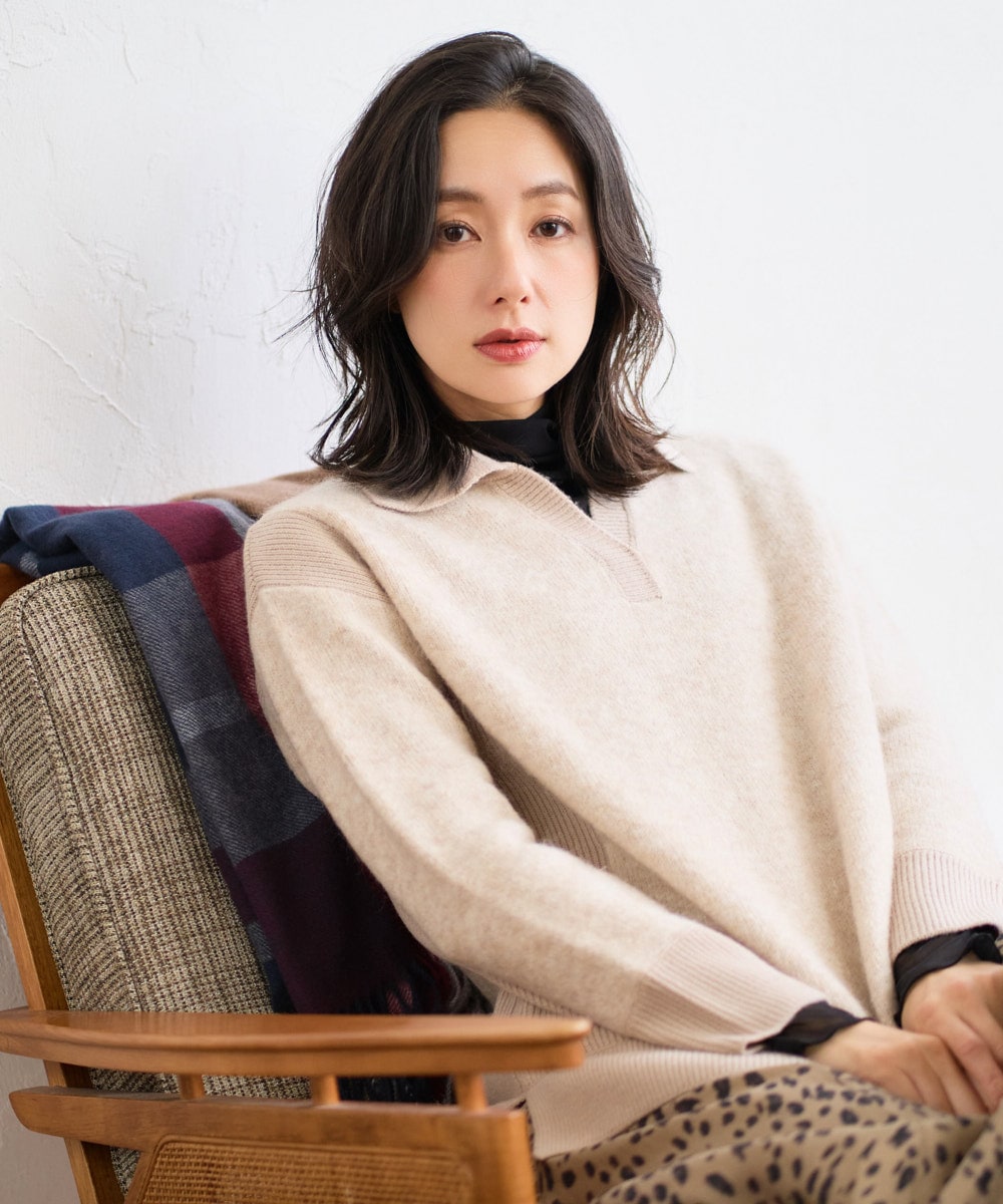 さらに、【メランジブークレ襟付きニット】は、モヘア混のふわふわとした風合いが特徴で、ナチュラルなダスティブルーとベージュの2色展開。