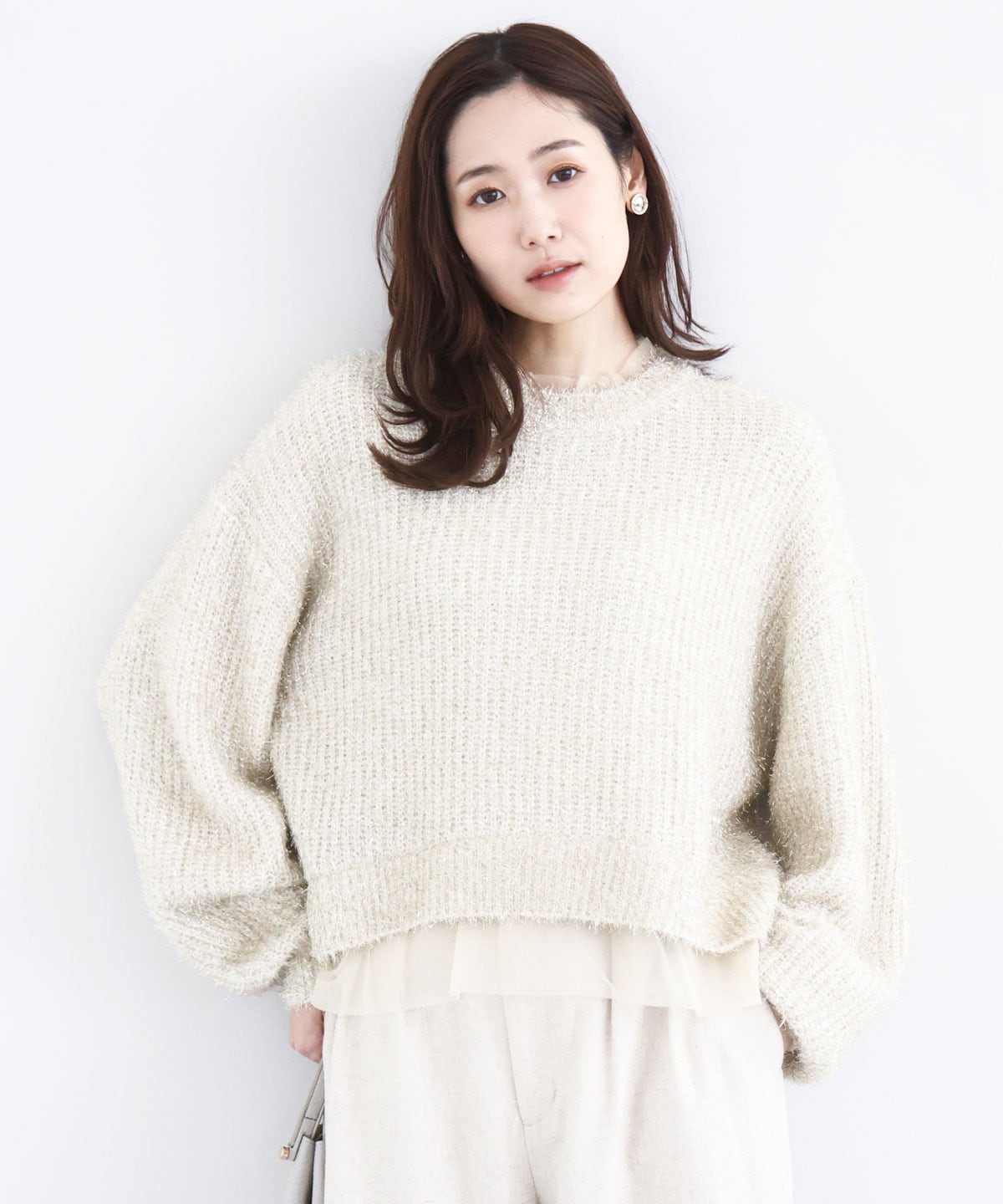 ホリデーシーズンにも一枚で映えるキラキラのラメニット。