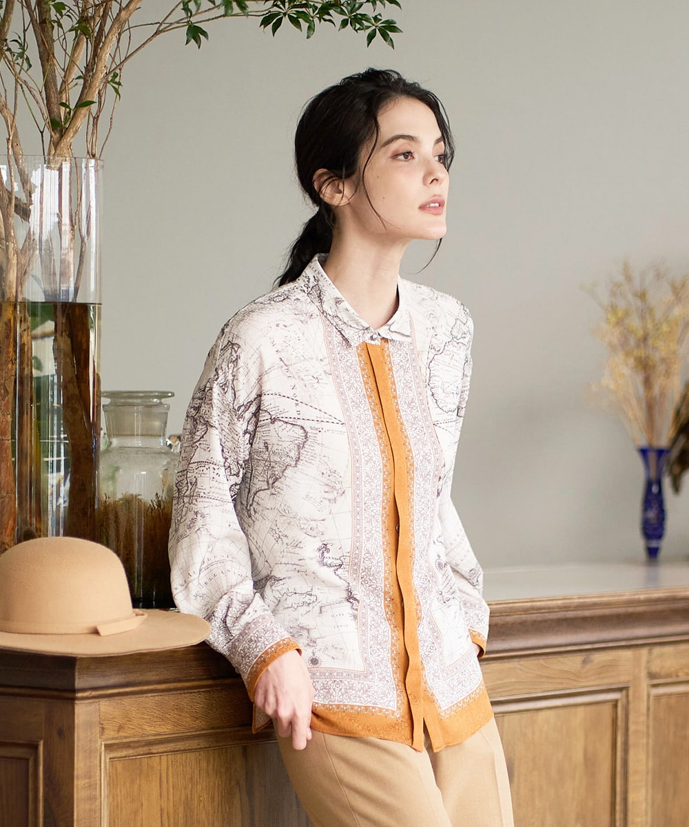 アートプリントで上品で品よく決まるブラウスに