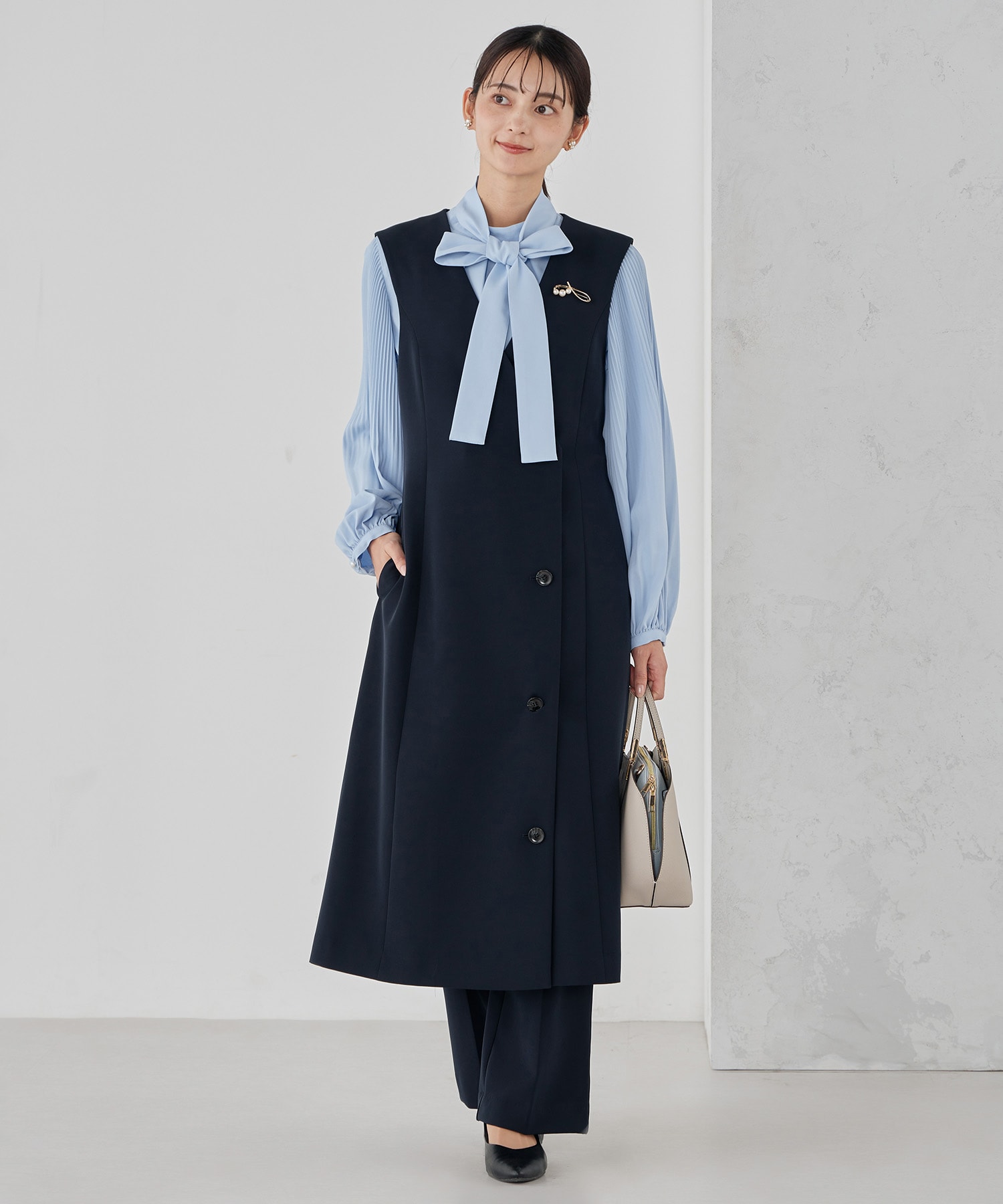 【洗える/ストレッチ/セットアップ対応】ダブルクロスロングジレワンピース