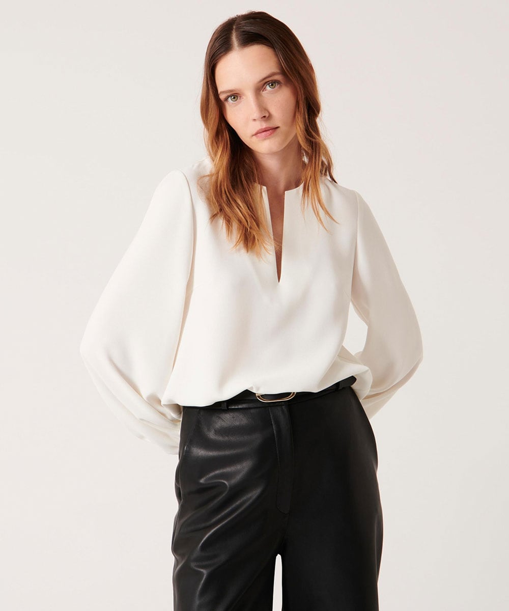 ジョーゼット素材で落ち感のあるブラウスなので、