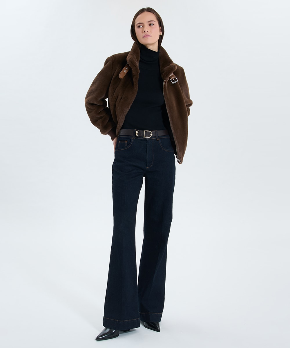 デニムとの相性も抜群ですが、ミニスカートやショートパンツとの合わせもおすすめです。