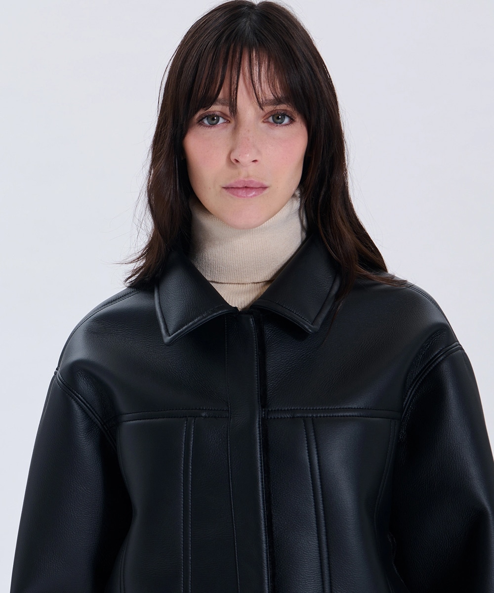 フェイクファー、フェイクレザーの両面を楽しめる1着です。