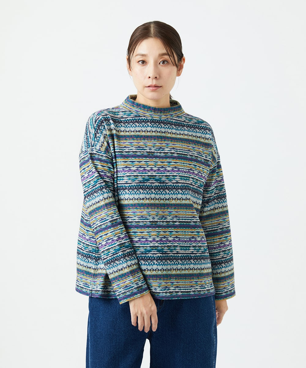 そこにセーターのような編地柄風のイタリア製転写シートをプリントした、『トロンプルイユ=だまし絵』のカットソーです。ストレッチ性もあるので、着心地も抜群です。