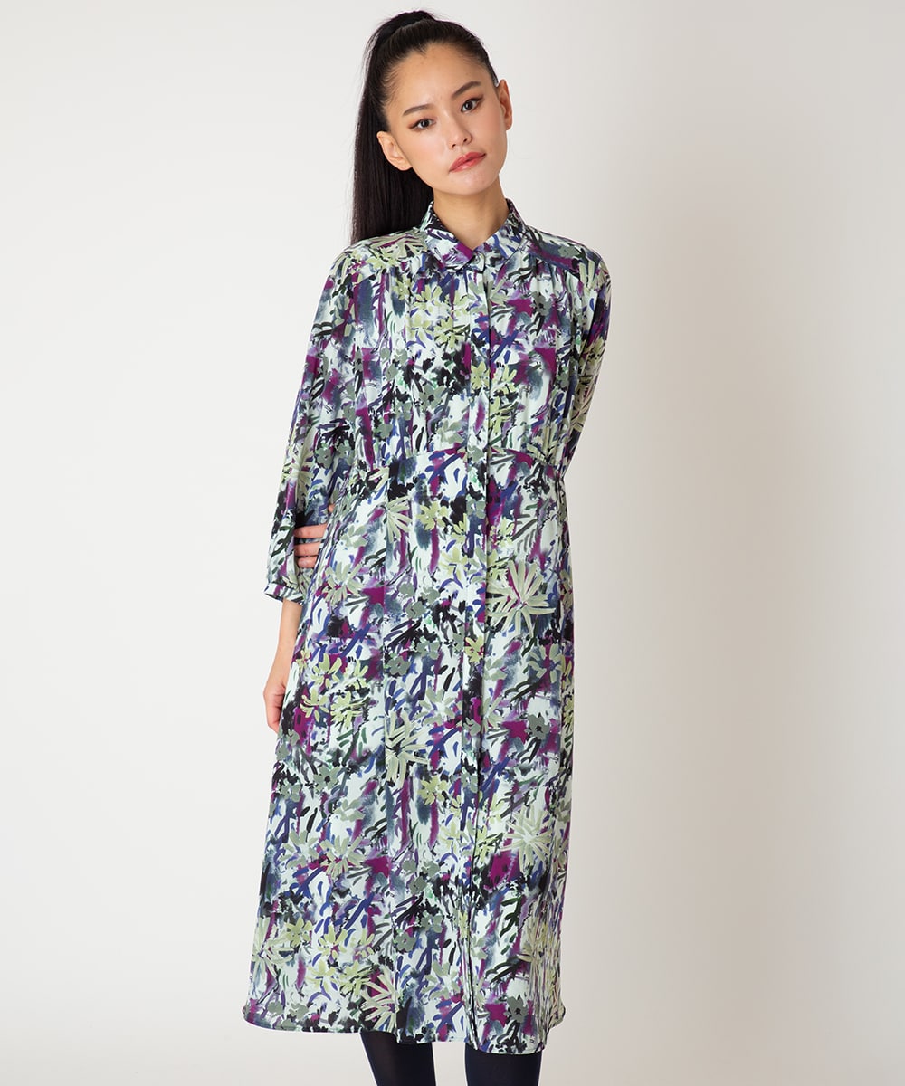 【先行予約/大きいサイズ】フラワープリントシャツカラーワンピース