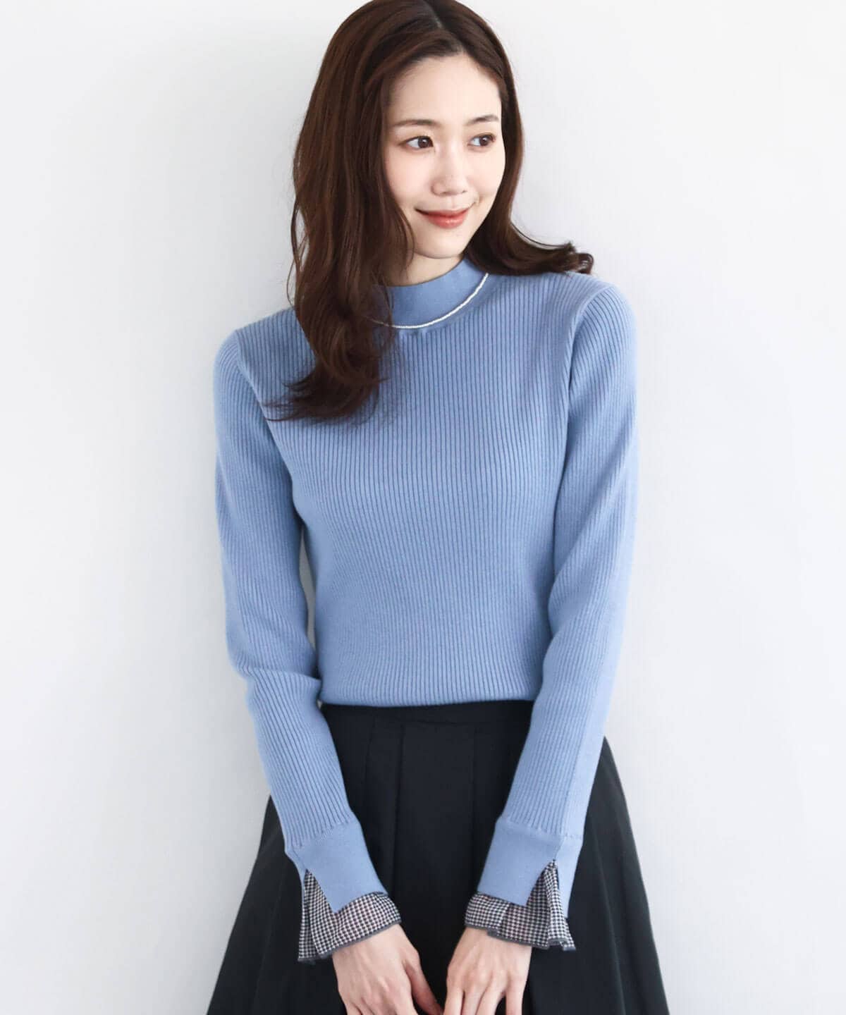 ニットは袖のチャックのレイヤードデザインが可愛い一枚。