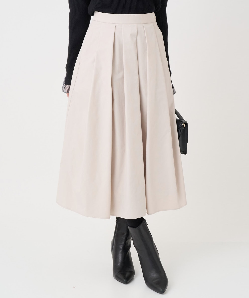 【小さいサイズ】メモリータフタ タックフレアスカート/洗濯機で洗える