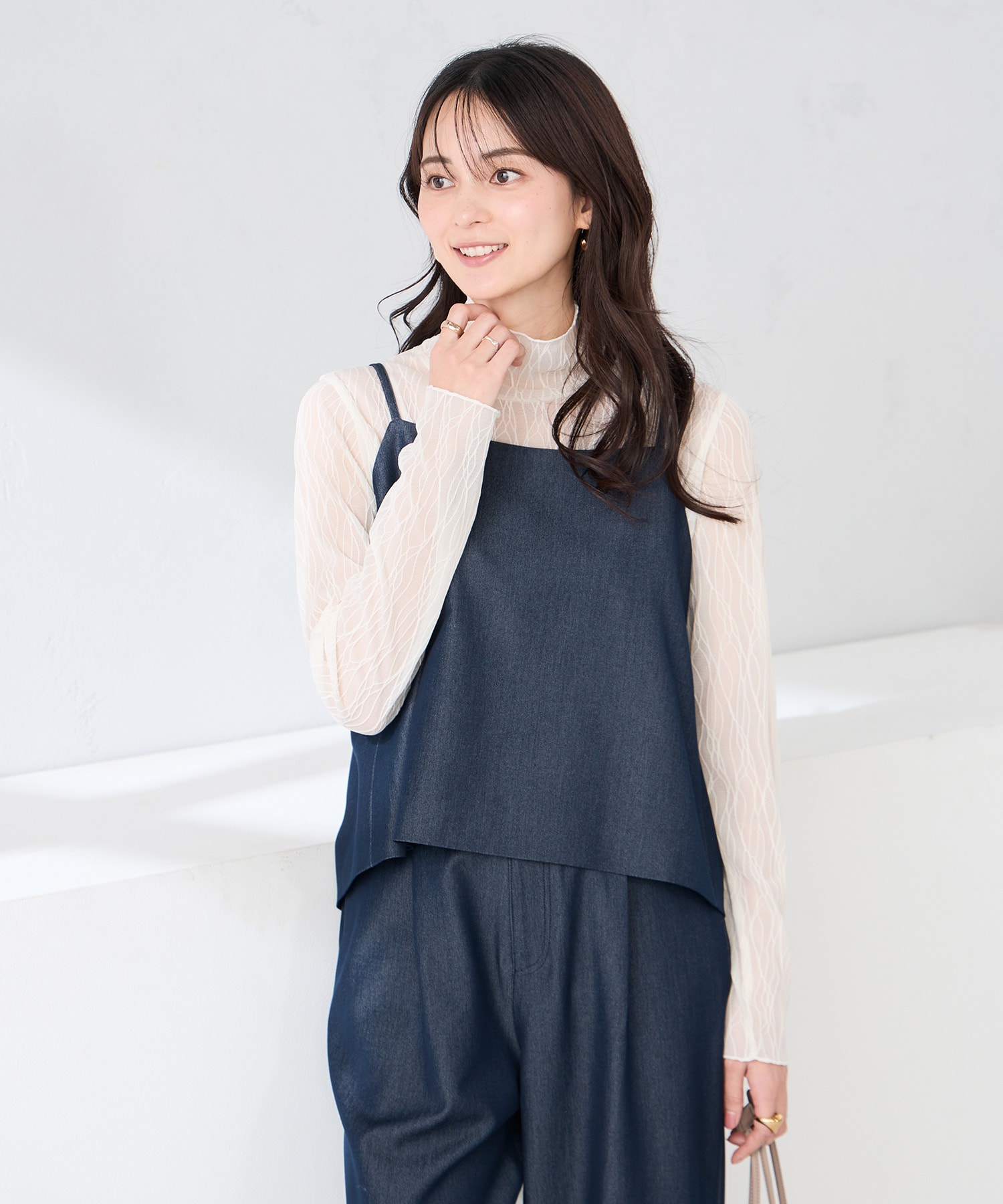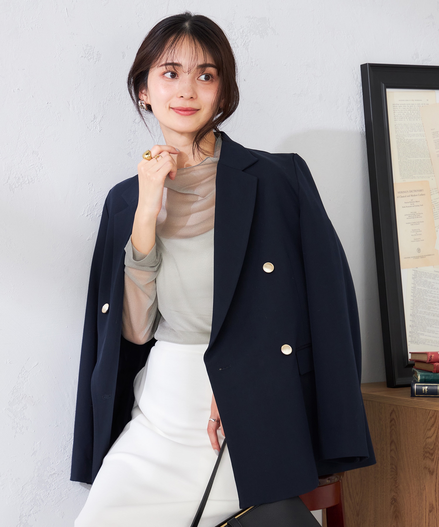 シアーインナーやハイネックニットなど、インナーを変えて着こなしを楽しめます。