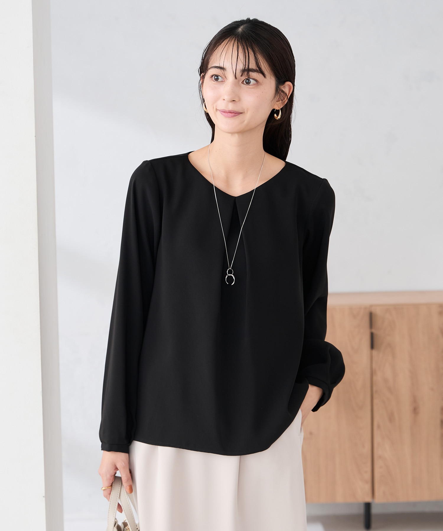 サテンバックフレアブラウス【洗える/速乾/毛玉になりにくい/イージーケア】