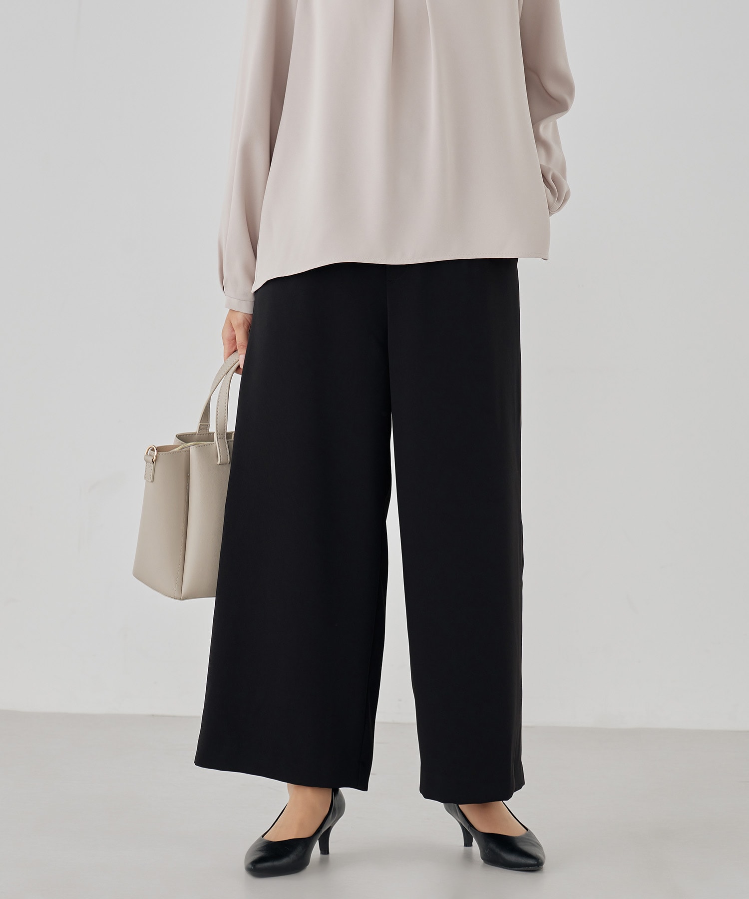 サテンワイドクロップドパンツ【洗える/速乾/毛玉になりにくい/イージーケア】