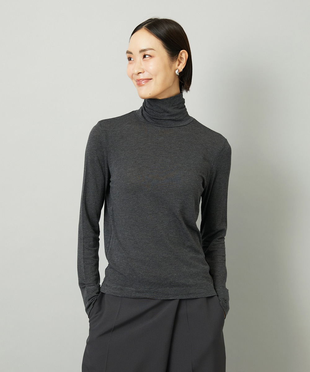 [小さいサイズ][レイヤードにおすすめ]シアーハイネックカットソー