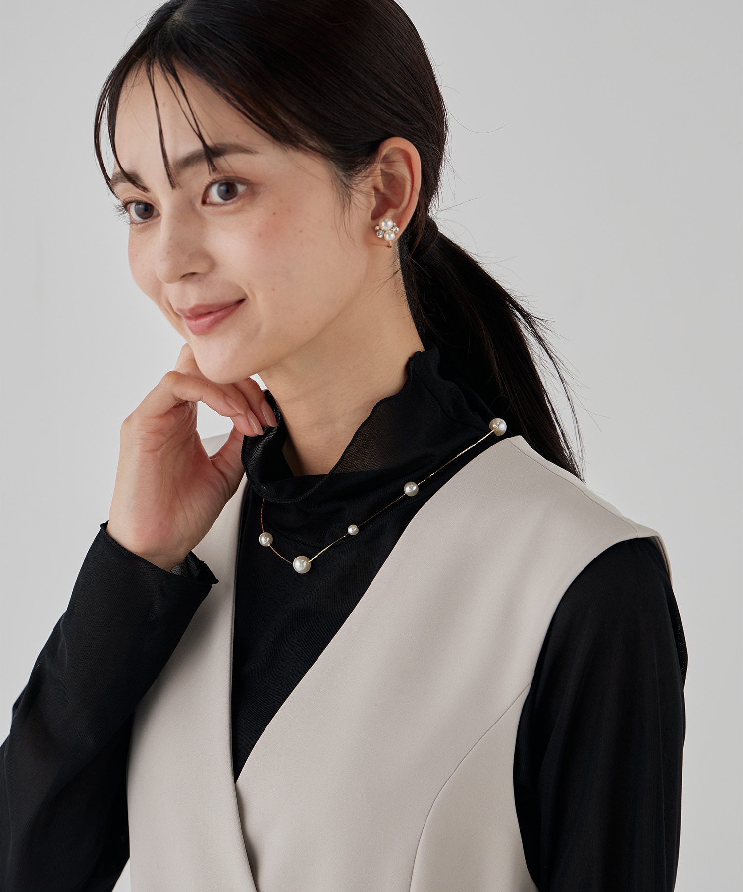 小顔効果もあり、襟が顔周りに触れないパターン設計