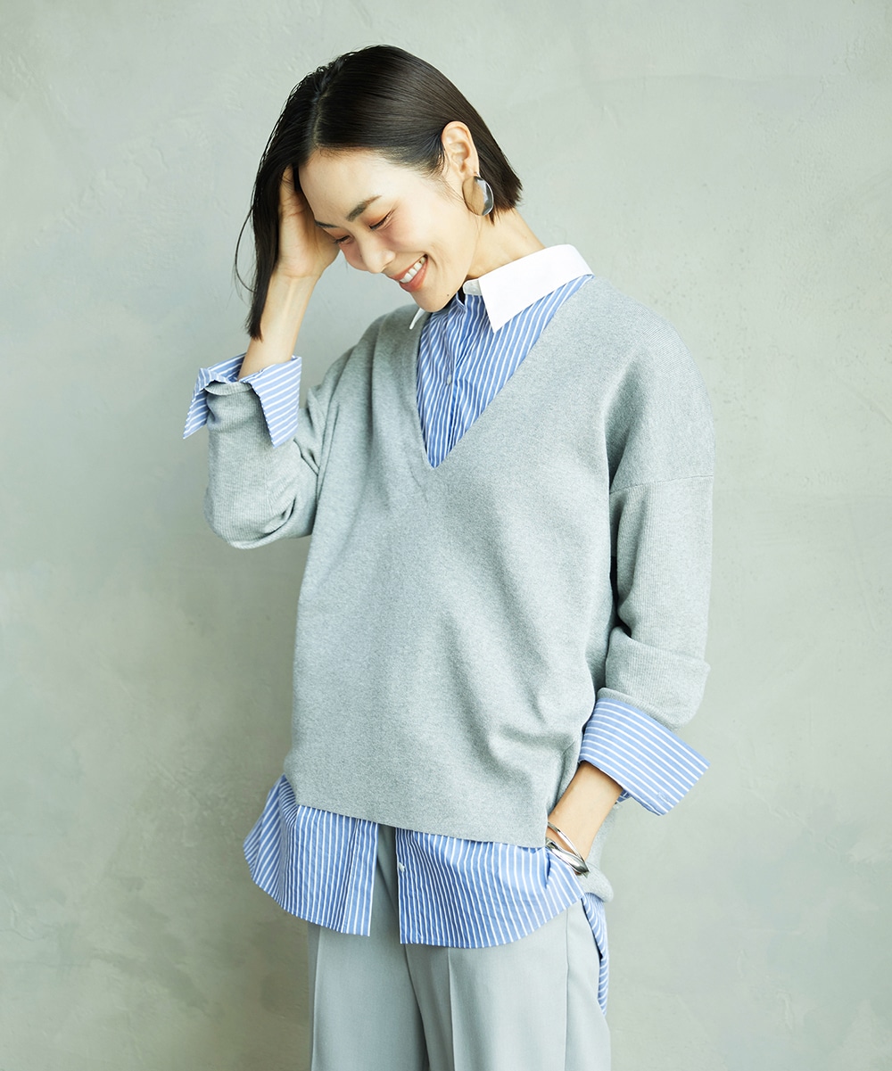 一枚で着ても羽織としていても、ニットやベストのレイヤードとしても着まわせます。
