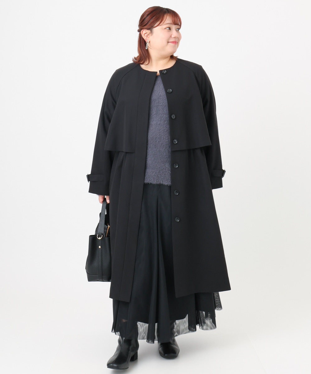 Wのトレンチコートほど気負わず、マウンテンパーカーほどカジュアルになりすぎない、様々なシーンにご着用いただけるノーカラートレンチコート。