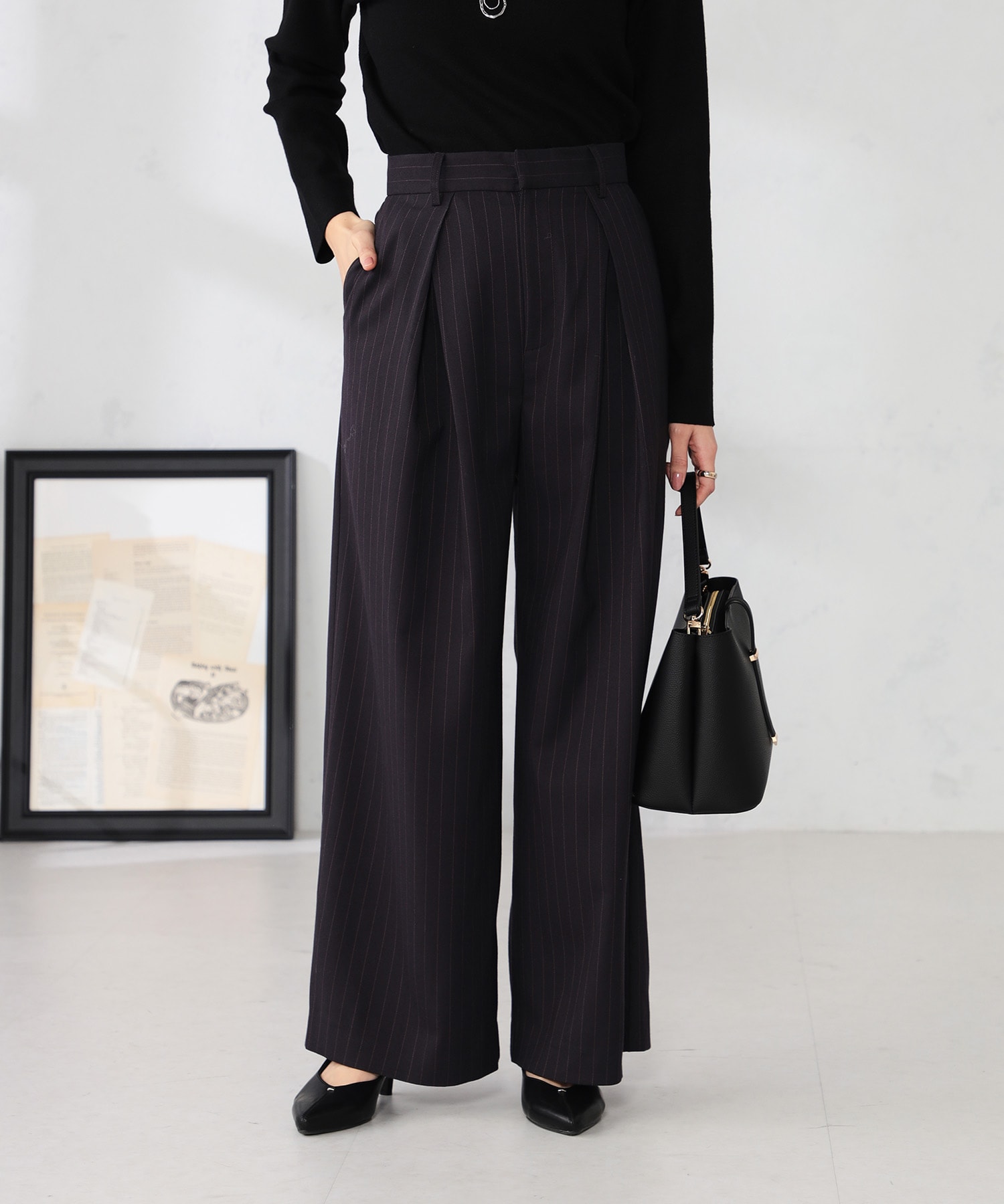 ☑シルエットが綺麗!ストライプタックワイドパンツです♪