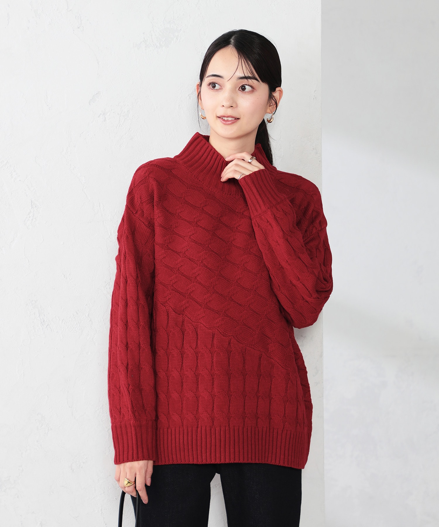 ☑暖かみのあるケーブル編みニット