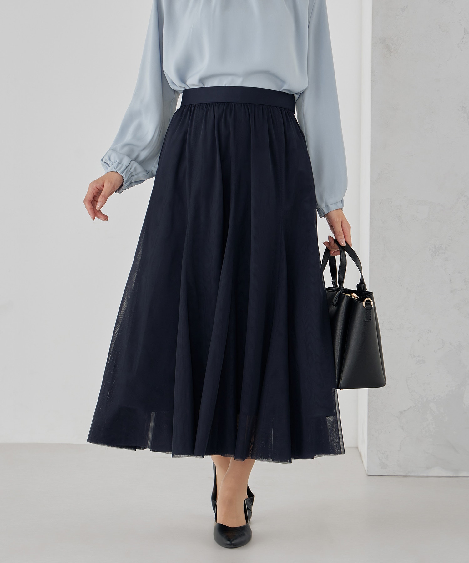 チュールスカートは、動くたびに揺れる華やかなシルエットが魅力。キレイめからカジュアルまで幅広く活躍します♪