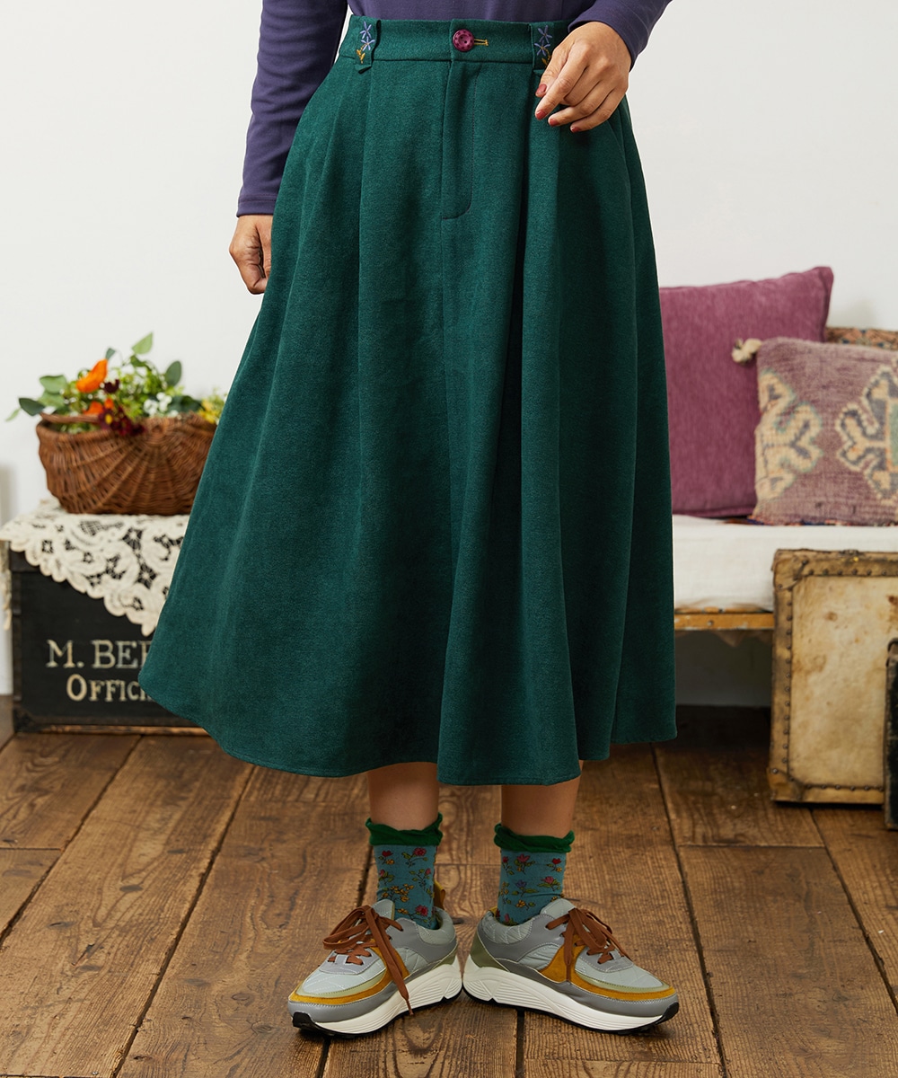 合わせたスカートはPradera(プラデラ)ピーチ起毛タックスカート。