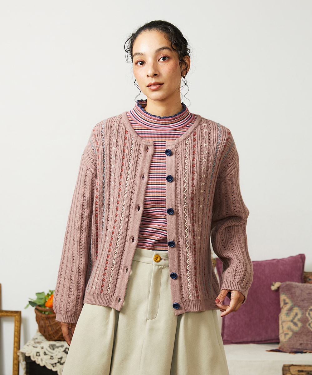 Escalera(エスカレラ)刺繍ニットカーディガンを羽織れば、
