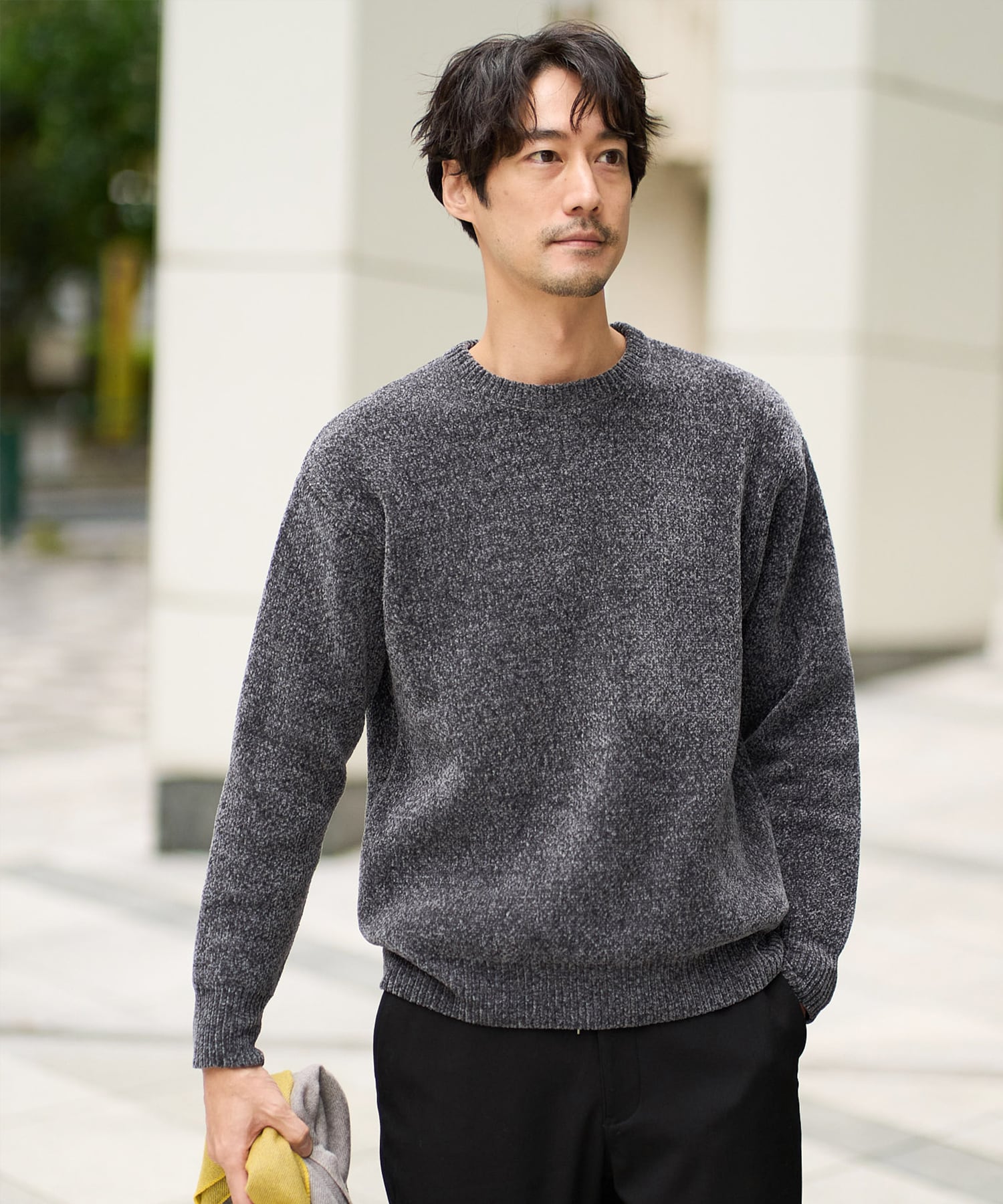 寒い季節もおしゃれに楽しめる、【LANATEC】のオーバーパンツとモールクルーネックニット。