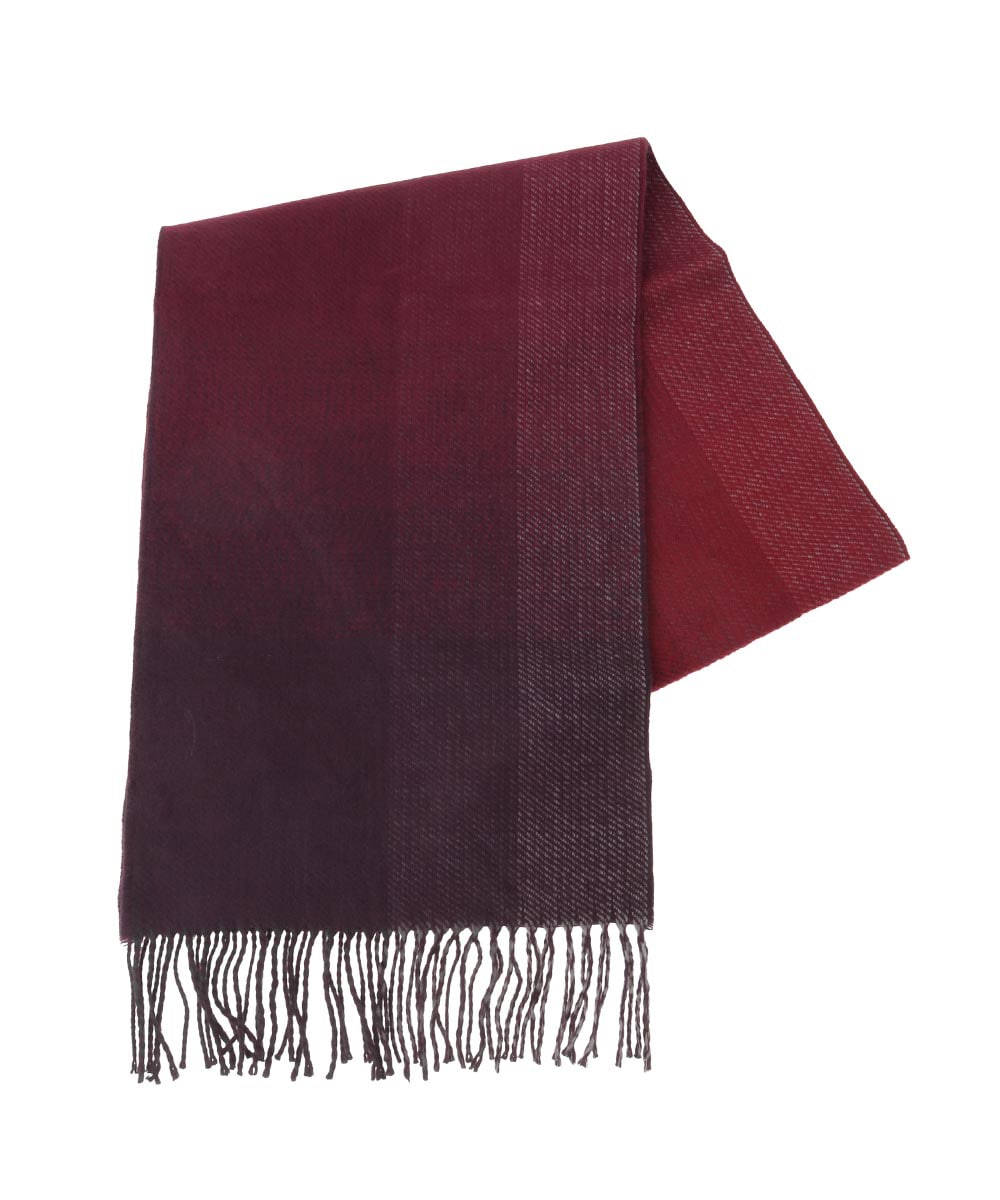 リバーシブルのマフラーは、無地とグラデーション面の両面使いでオンオフ兼用、リラックスコーデやパーティーシーンにも対応します。