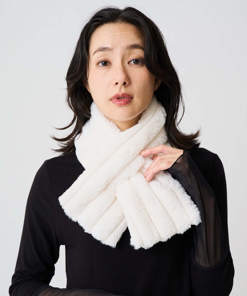 ファーマフラーは防寒ももちろんですがダウンの襟元にファンデーションが着いてしまうのをカバーしてくれます。ファーにはつきにくくお洗濯も出来るので安心です。
