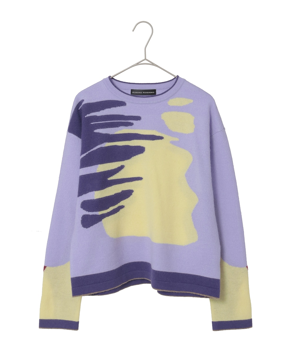 春を感じるカラー配色が美しい、まるでアートを纏っているかのようなニットです。非常に細い糸で編んだ、ふんわりとした軽いニットです。とても暖かく、肌触りが良く、着心地抜群です。適度にゆとりがあるのでインにブラウスを合わせたりスタイリングを楽しめます。ニットでもカジュアルにならずきれい目で華やかな一枚です。