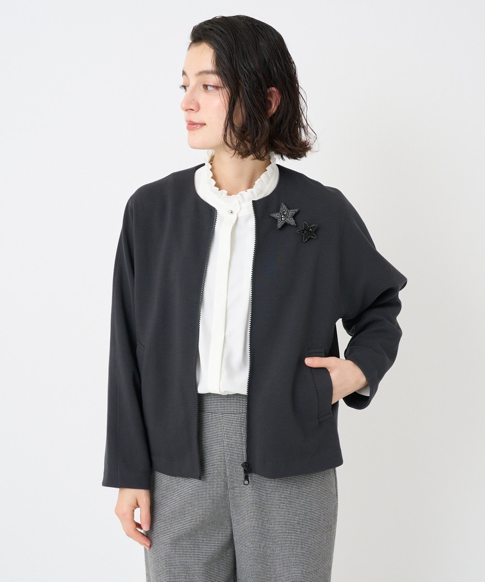 きちんと感がありつつ、カーディガン感覚で羽織れるレッシュのノーカラージャージージップ羽織と同素材のスカートです。