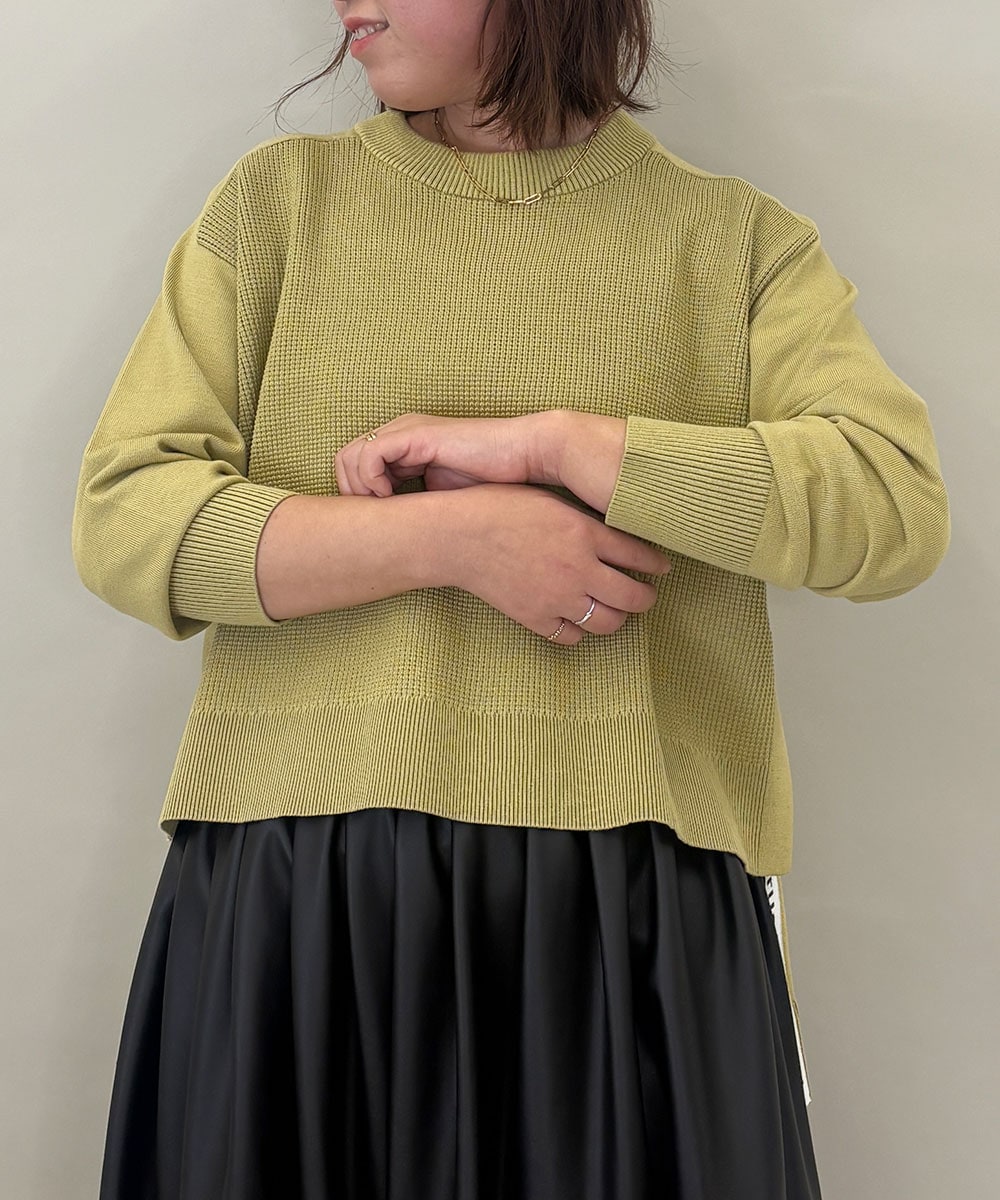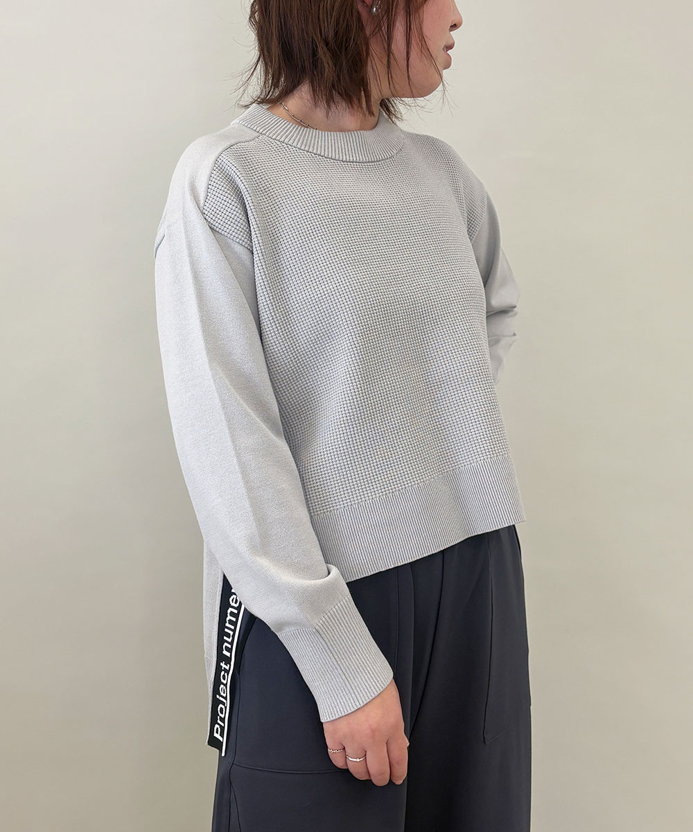 【洗える】テールロングワッフル切り替えニットプルオーバー