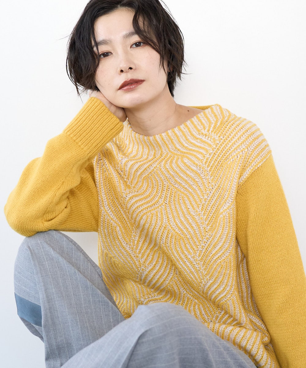 ニットは厚手過ぎないのでアウターに袖を通してもごわつかず、羽織やすい一着です。