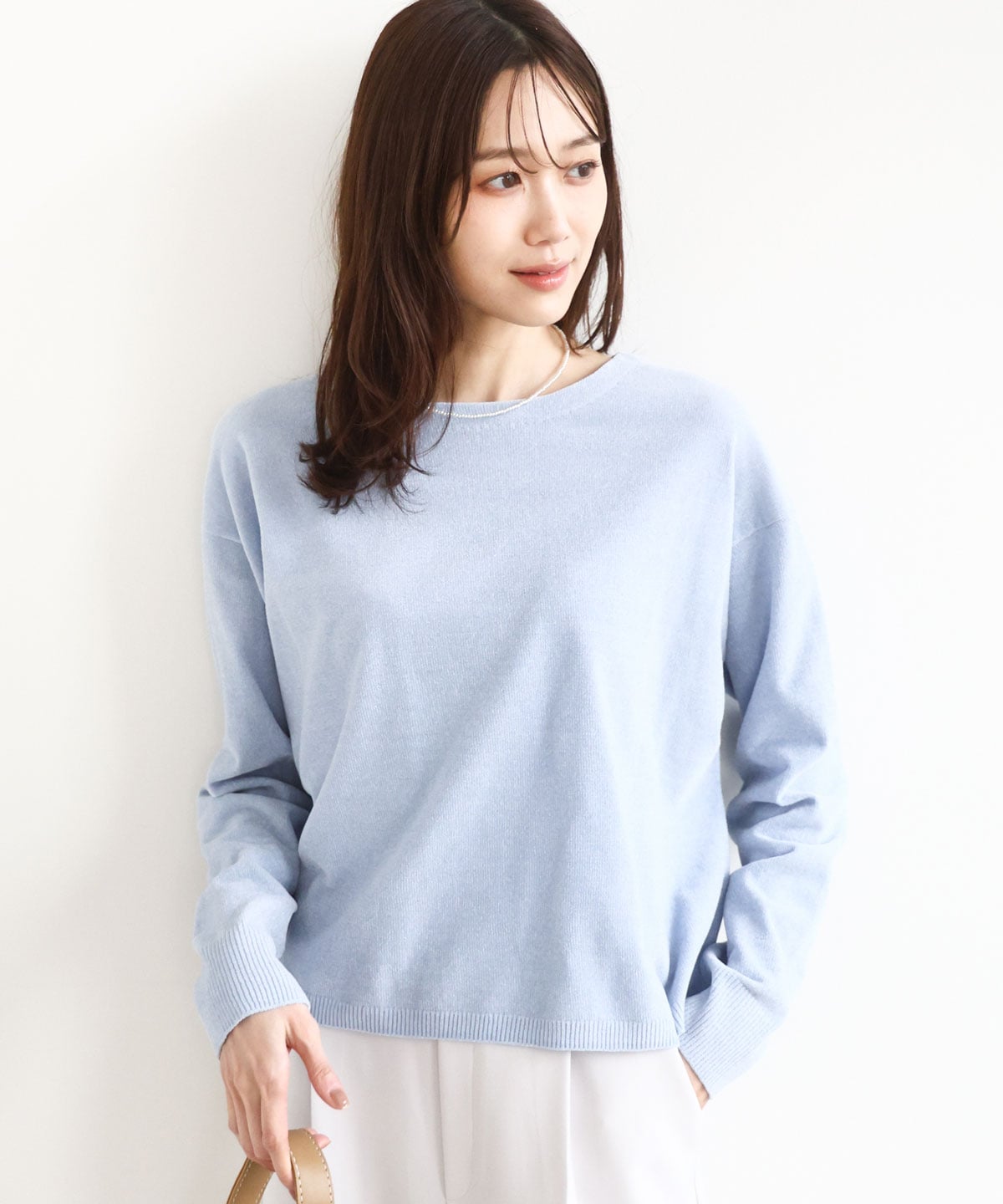 大人カジュアルやオフィスカジュアルにマッチしやすいシンプルデザインニットです。