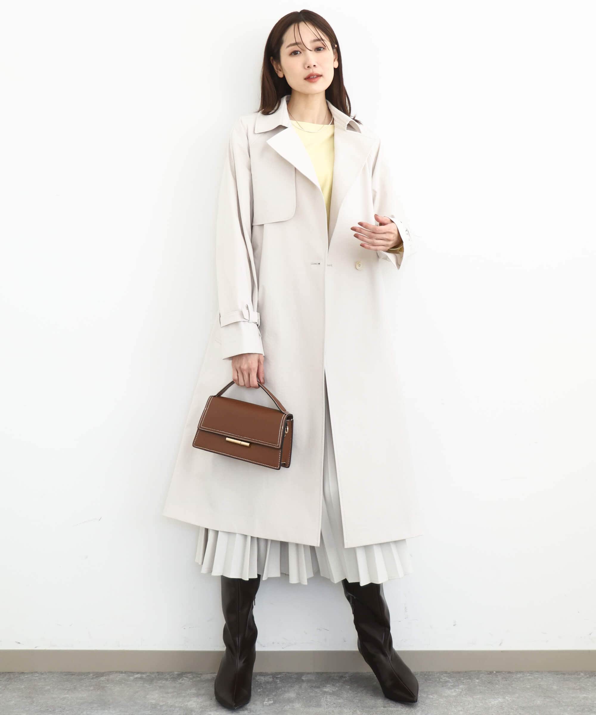 【小さいサイズ】トレンチディティールロングコート/撥水/洗える