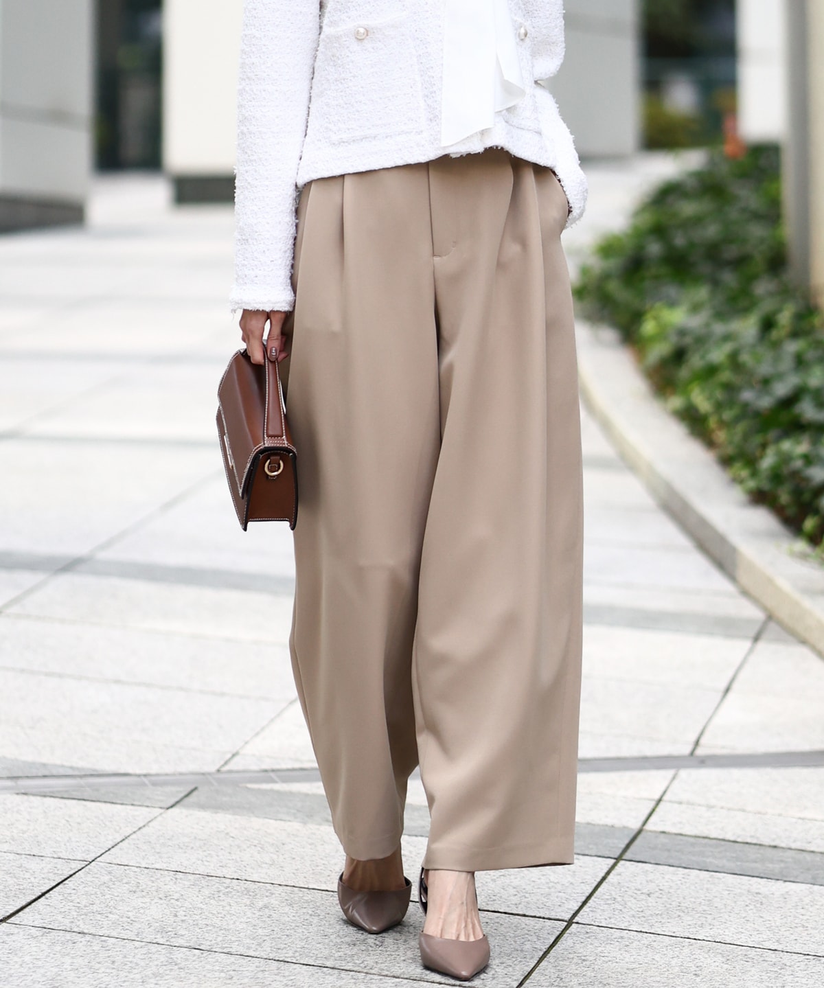バレルスタイルのテロテロとしたパンツと組み合わせるとちょっとお洒落な感じに