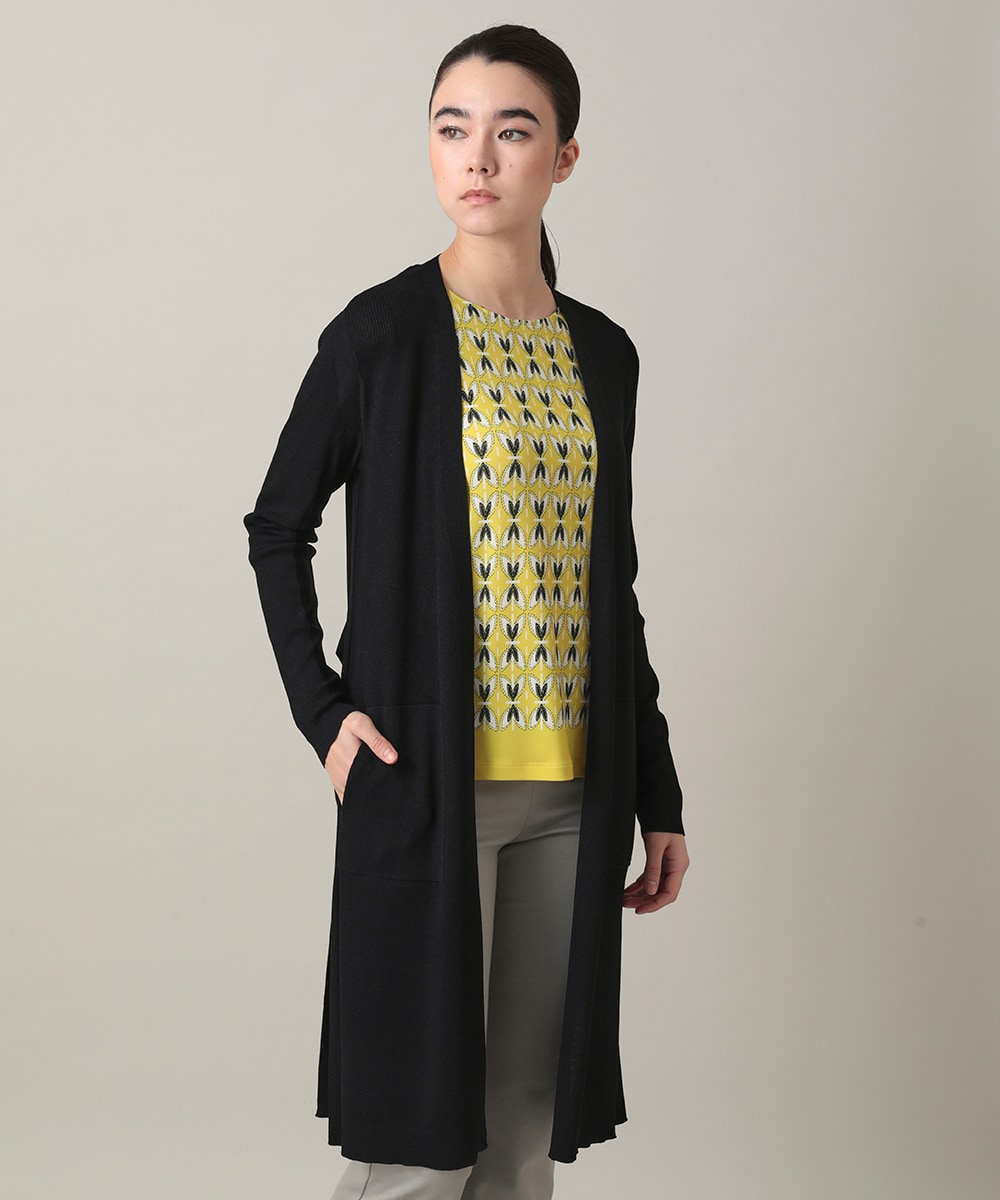 細かなリブ編みで肌に付かず離れずのさらっとした着心地で、ラインを拾わず細長シルエットを作ってくれます