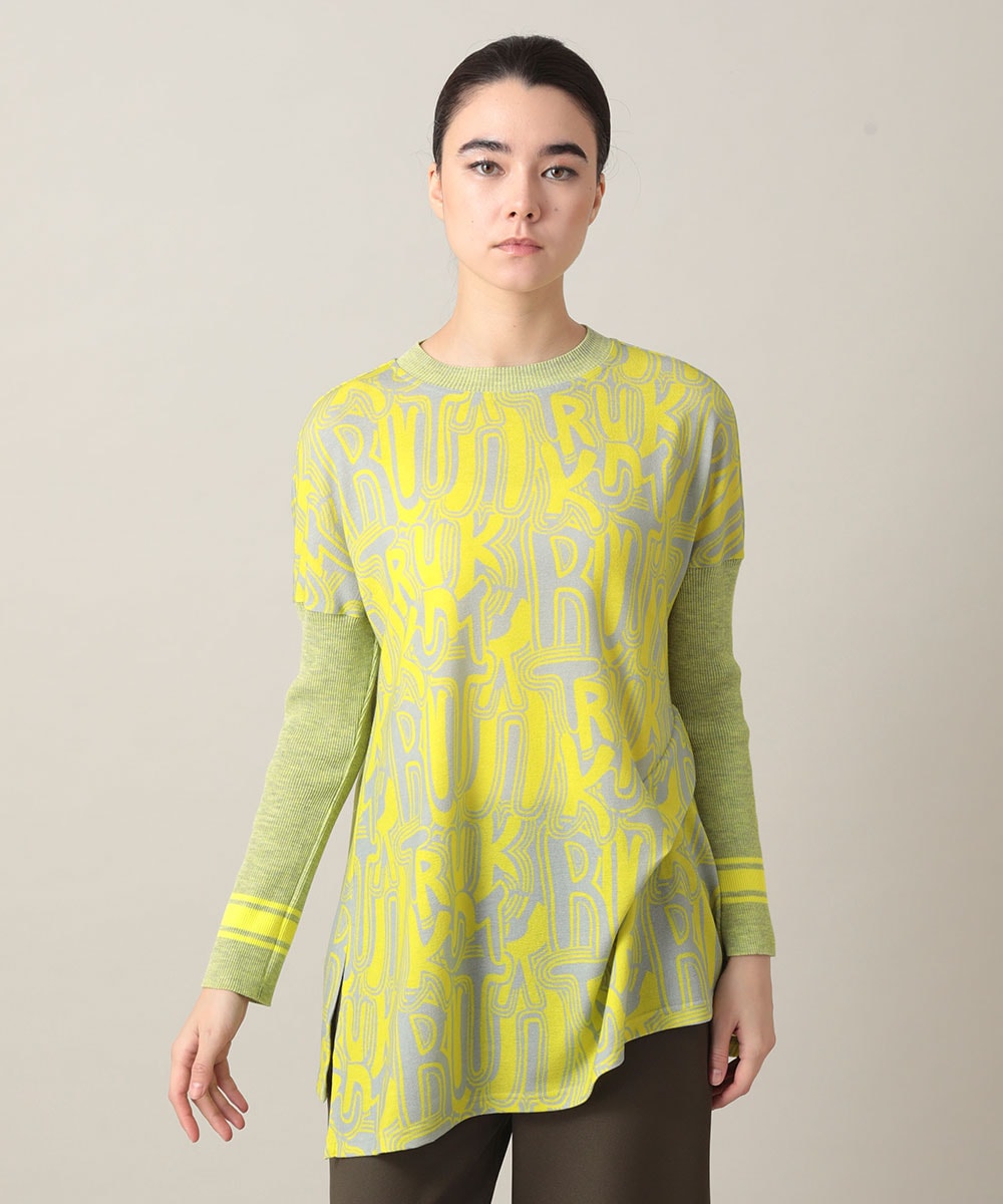 ポップなロゴ柄を暖かみのあるストレッチジャージ素材にプリントしたチュニック。袖と衿にリブニットを使用しているので、トランクらしい着心地のいい普段使いしやすいチュニックになっています。